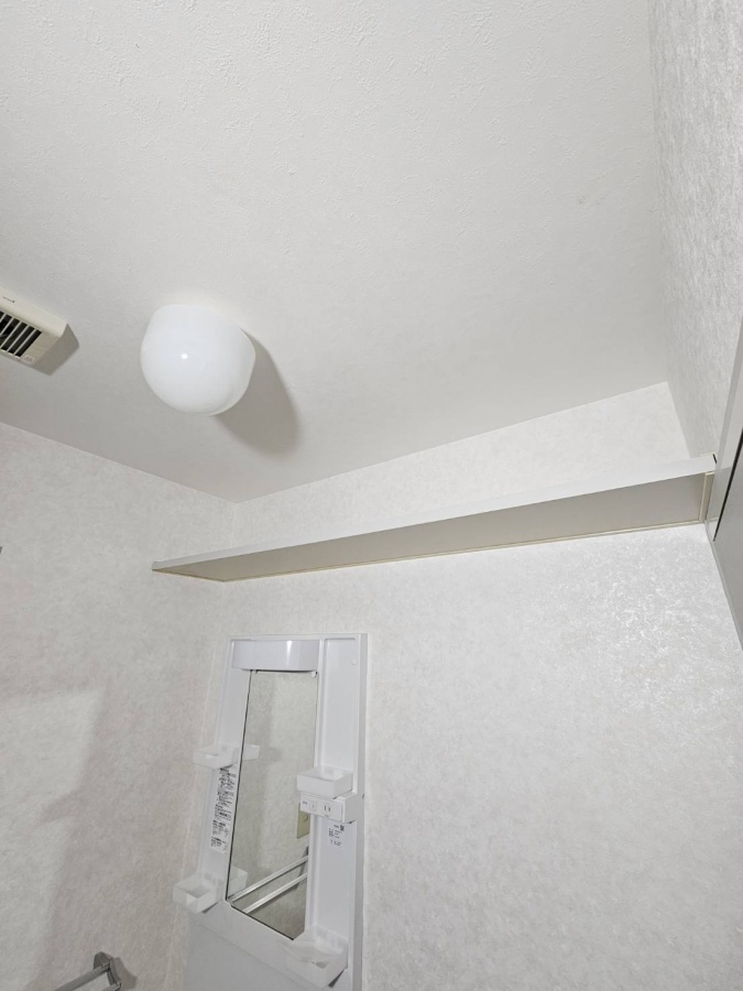 洗面台の上に棚があります