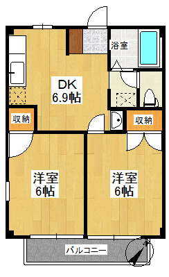 間取詳細2LDK(洋室6帖、洋室6帖、LDK6.9)