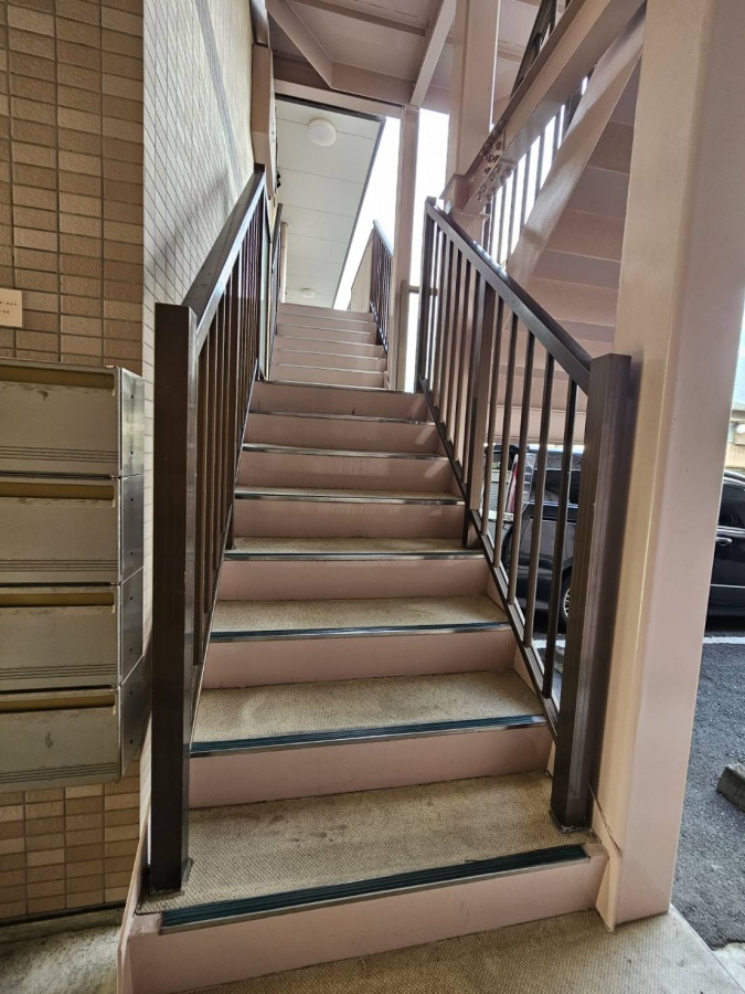 階段下に集合ポストがあります