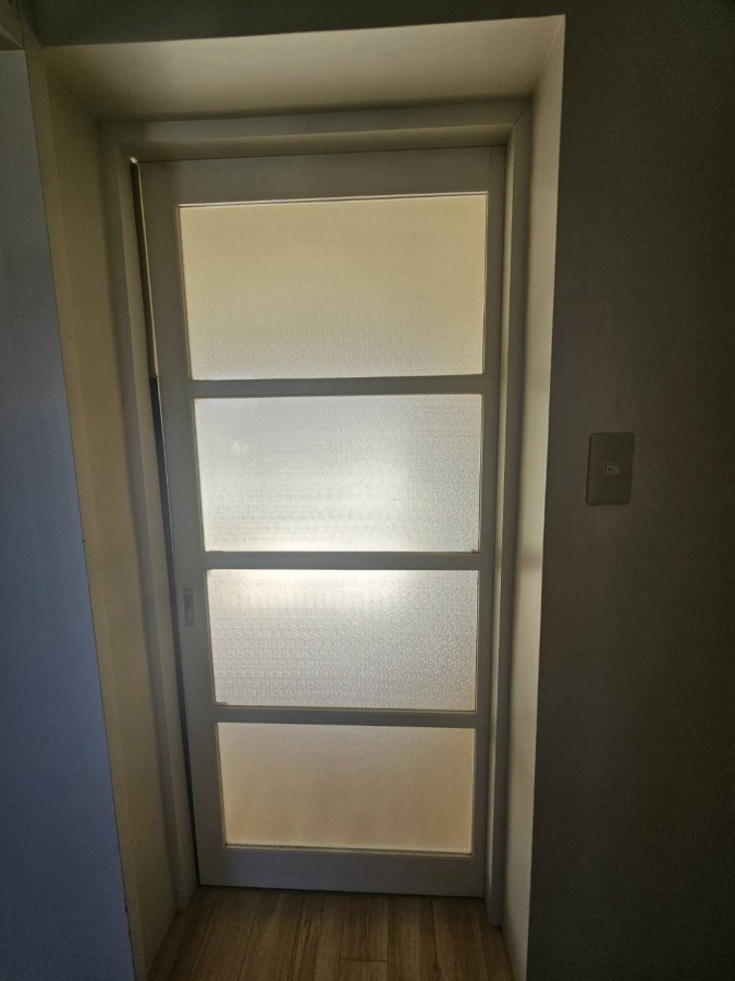 曇りガラスで柔らかな光が室内に広がります