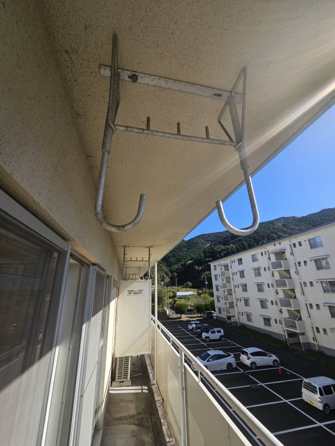 上側から物干しのフックがあります