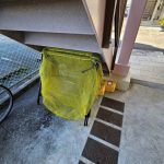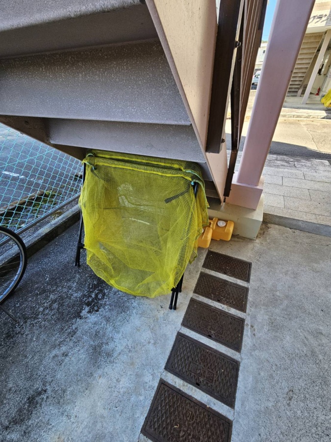 階段下にゴミ出しのネットがあります