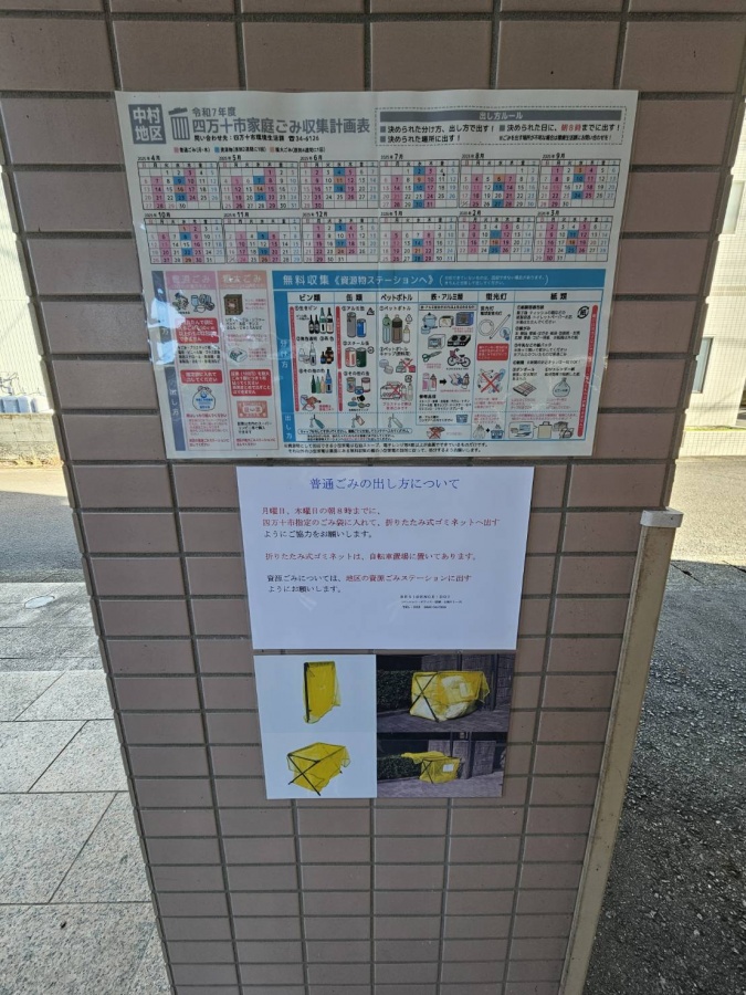 ゴミ出しの注意事項なども表示されています