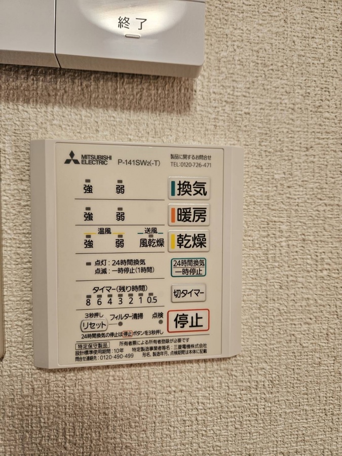 浴室暖房換気乾燥機のスイッチパネルです