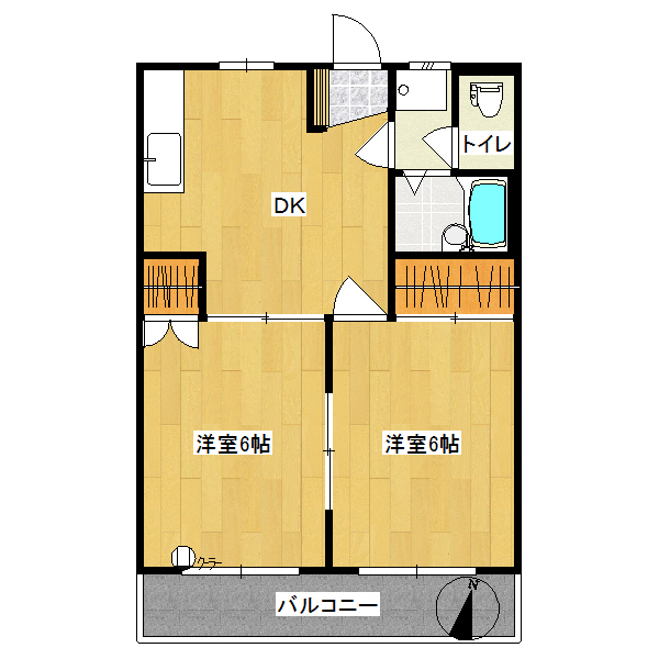 | 間取詳細 | 2DK(洋室、洋室、DK) |