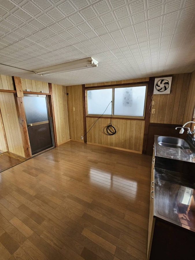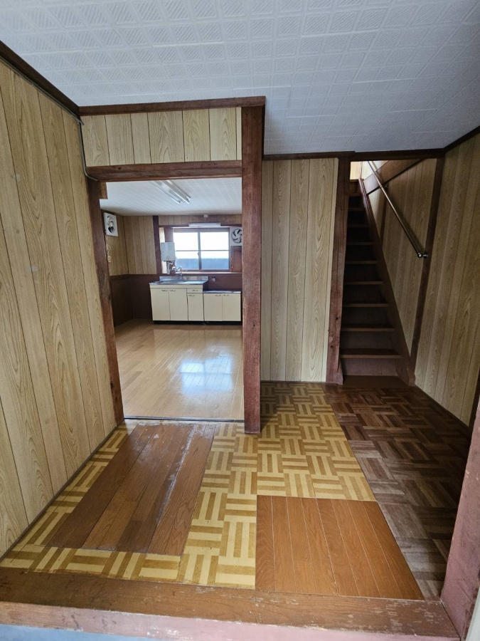 左側は台所へ。右側は階段があります