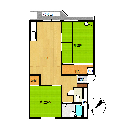 間取詳細2DK(DK, 和室6帖、和室4.5帖)