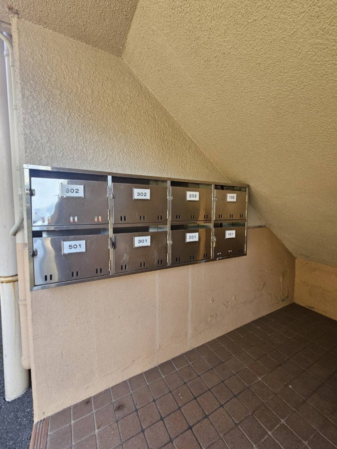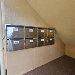 階段下に集合ポストがあります