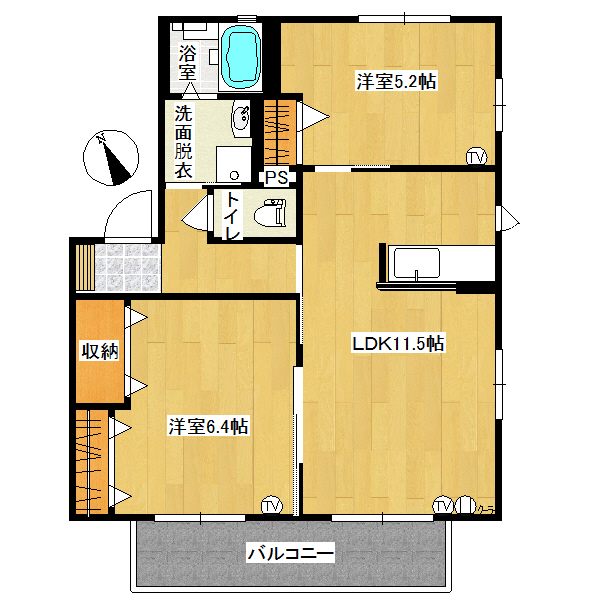 間取詳細11.5帖LDK 5.2帖洋間 6.4帖洋間