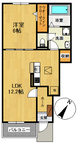 間取詳細1LDK(洋室6帖、LDK12.3帖)