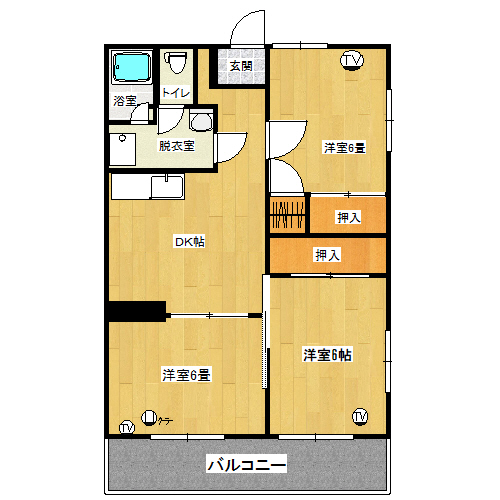 | 間取詳細 | 6帖洋間×3、キッチン、お風呂、トイレ、脱衣室 |
